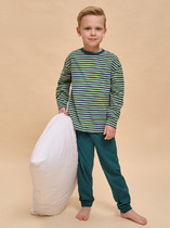 Трикотажная пижама из натурального хлопка. Джемпер с длинными рукавами. У брюк эластичный пояс на резинке. Оригинальная набивка выполнена из стойких, гипоаллергенных текстильных красителей. Пижама сохраняет цвет и форму после многократных стирок. Все трикотажные полотна производятся в соответсвии с нормами Швейцарского сертификата ЭкоТекс.
