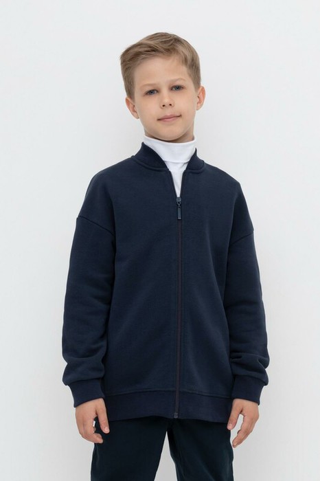 Трикотажный школьный бомбер для мальчика на молнии с карманами. Произведен из мягкого трикотажного футера трёхнитки. В составе 80% натурального хлопка и 20% полиэстера, при этом полиэстер ввязан внутрь по особой технологии и не соприкасается с кожей.