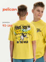 Футболка для мальчика. Комфортная, умеренного оверсайз-объёма со спущенным плечом. Вырез горловины обработан эластичной рибаной (ткань в рубчик) — она отлично держит форму, не растягивается, при этом ребёнку удобно надевать и снимать футболку. Перевод спереди: свободный стиль, перевод на спике: осмельтесь исследовать; Найди свою свободу; Свободный стиль; В дикой природе.