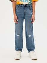 Синие джинсы выполнены из эластичного денима. Внутренняя сторона джинс из мягкого флиса, обеспечит тепло и комфорт на целый день. Есть дополнительная фиксация талии при помощи внутренней резинки. Изделие дополнено высококачественной металлической фурнитурой с логотипом бренда.