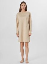 Сорочка женская из гладкокрашеного вискозного трикотажного полотна, свободного покроя, слегка расширенная к низу, с втачными рукавами - «крылышками», выполненными из кружева и втачанными в верхние части пройм. Расширенная иуглубленная горловина с кружевными отделочными деталями и сборкой по центру, окантована основным материалом.