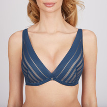 Бюстгальтер классической формы с формованной чашкой с гелевым Push-up. Детали изделия выполнены из эластичного кружева. Бретели эластичные, съемные. Центральная деталь декорирована бантиком из атласной ленты.
