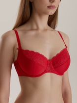 Бюстгальтер классической формы с формованной чашкой с гелевым Push-up. Детали изделия выполнены из эластичного кружева. Бретели эластичные, съемные. Центральная деталь декорирована бантиком из атласной ленты.