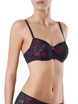 Кружевной бралетт с формованным стационарным вкладышем с push-up, на каркасах. Бретели регулируемые, не съемные.