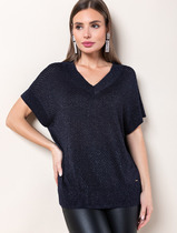 09.04 Vilatte Джемпер фактурной вязки с мягким люрексом D39.628 т.синий