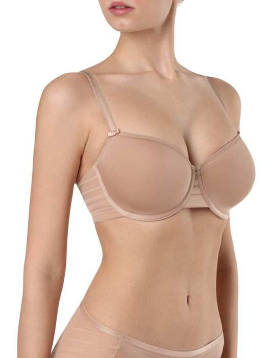 Бюстгальтер серии SPORT GLAM создан в направлении «спортивный шик» и объединяет спортивный стиль полотна в полоску с женственной мягкостью конструктивных линий. Преимущества модели:- формованная чашка spacer, на каркасах;- боковые детали стана на подкладке.