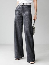 09.04 Vilatte Джинсы трубы из эластичного денима с металлизированным покрытием