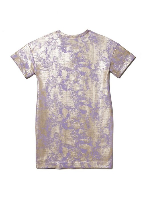 Платье А-силуэта из эластичного хлопкового полотна мягко облегает силуэт, не сковывает движений и при этом идеально смотрится на любой фигуре. Изюминку в ваш повседневный образ внесет эффектный золотой принт, нанесенный методом металлической печати.