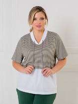 Блуза прилегающего силуэта на тонких бретелях. Бретели с регулировкой (на кольца и регуляторы пластик 10мм). Блуза на подкладке из основного полотна. На детали переда рельефы. Спинка со сборкой на эластичную тесьму по центральной детали спинки (внутр. 6мм).