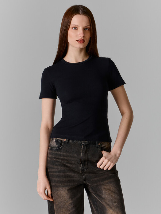 Джемпер прилегающего силуэта. Перед и спинка цельнокроеные. Рукава короткие, втачные.  Горловина обработана обтачкой из основного полотна. Низ и рукава вподгибку.
