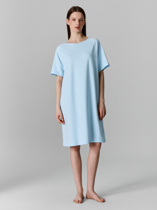 Сорочка женская прямого силуэта. Горловина круглой формы, обработана обтачкой из основного полотна . Рукава короткий, реглан.  Нижний срез сорочки и рукавов обработан швом вподгибку.