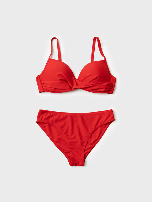 Женский раздельный купальник. Топ с мягкими чашками и плавки средней посадки. Верх выполнен с перекрутом спереди и застегивается сзади на металлическую пряжку. Бретели регулируются по длине. На плавках сзади маленький металлический значок. Изделие с мягкой подкладкой и эластичными краями для комфортной посадки. Благодаря UF-защите, ткань сохраняет первоначальный вид даже при длительном пребывании на солнце. Подойдет для пляжа, отдыха и активного лета.