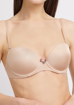 Гладкий базовый бюстгальтер Bandeau bra с формованными чашками на каркасах, без push-up во всех размерх и с боковыми корсетными вставками. Силиконовая лента по верхнему срез бочка. Застежка на 2 крючка и 3 ряда петель.Эластичные бретели можно откорректировать по длине. Бретели съемные. Ширина бретелей на объемы 70, 75 и 80 см с чашками А,В,С - 10мм, на объемы 75, 80 и 85 с чашкой D  и размер 85С - 15 мм.  Изделие украшают брендированные бретели и  металлическая капелька с первой буквой натменования  бренда