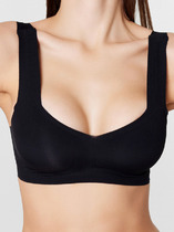 Бюстгальтер-топ из эластичного рибового полотна в вертикальный рубчик с мягким подкладом и  съемными вкладышами.  Без каркасов и боковых корсетных вставок. Регулируемые не съемные тонкие бретели.. Брендированная лента под грудью.