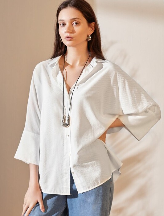Стильная блузка молочного цвета в голубую полоску идеально держит форму и подчеркивает любую фигуру. Свободный крой с цельнокроеным рукавом 3/4 создает эффект легкой непринужденности и комфорта, а манжеты на рукавах добавляют аккуратности и завершенности образу. Отложной воротник придает блузке классическую нотку, которая гармонично сочетается в деловом образе. Хлопок с добавлением эластана гарантирует отличную посадку, подчеркивая достоинства и скрывая недостатки, при этом сохраняет свежесть на протяжении всего дня. Такая рубашка станет великолепным выбором для тех, кто ценит удобство и стиль одновременно. Модель удачно сочетается с различными предметами гардероба, позволяя создавать стильные и практичные образы в любую погоду.