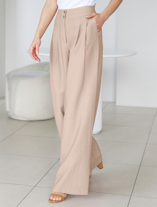 Совместные покупки Уфа Женская одежда Брюки — 09.04 Vilatte Брюки-палаццо из плотного лиоцелла D24.267 светло-бежевый