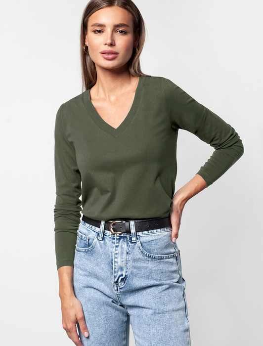 Совместные покупки Уфа Женская одежда Джемперы, свитеры, водолазки — 14.04 Vilatte Джемпер из премиального хлопка с эластаном D49.958 темно-оливковый