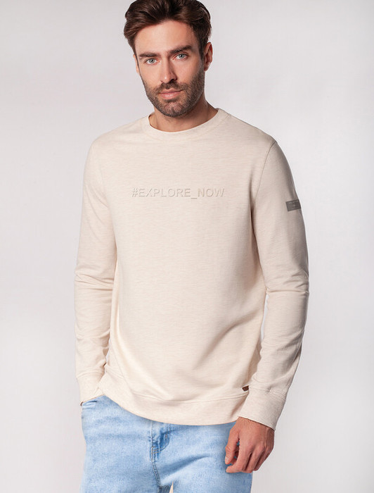 Совместные покупки Уфа Мужская одежда Джемперы, свитеры — 09.04 Vilatte Джемпер с авторским принтом из легкого футера U49.014 бежевый мела