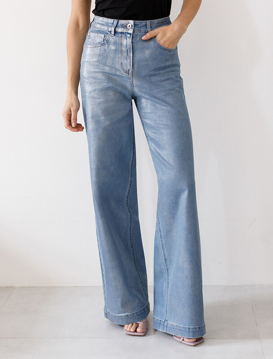 09.04 Vilatte Джинсы-трубы с металлизированным покрытием D54.219 голубой-серебр