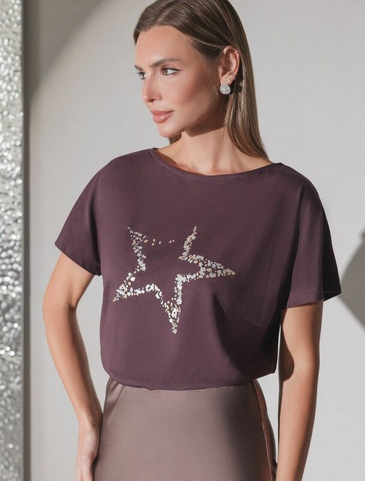 Совместные покупки Уфа Женская одежда Футболки — 09.04 Vilatte Футболка D49.133 бургунди_stars