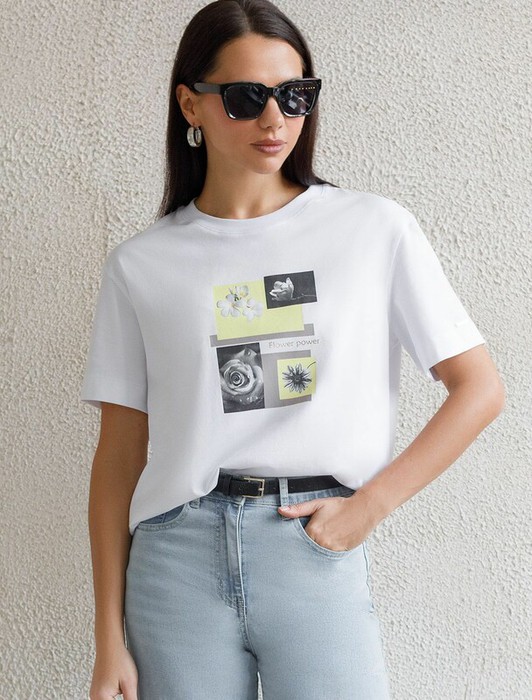 Совместные покупки Уфа Женская одежда Футболки — 09.04 Vilatte Футболка D49.145 белый_flower_power