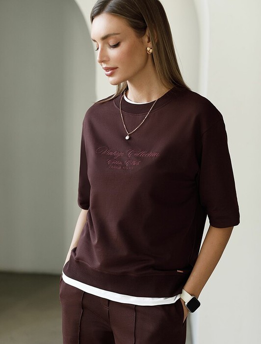 Совместные покупки Уфа Женская одежда Футболки — 09.04 Vilatte Футболка свободная с принтом из футера двухнитки с эластаном D49.