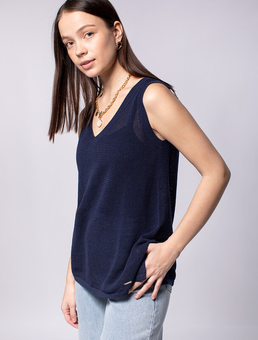 14.04 Vilatte Летний топ полупрозрачной вязки из хлопка D33.010 темно-синий