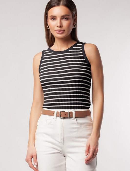 Совместные покупки Уфа Женская одежда Майки, топы — 21.04 Vilatte Топ из трикотажа в широкий рубчик D43.223 черный с белым