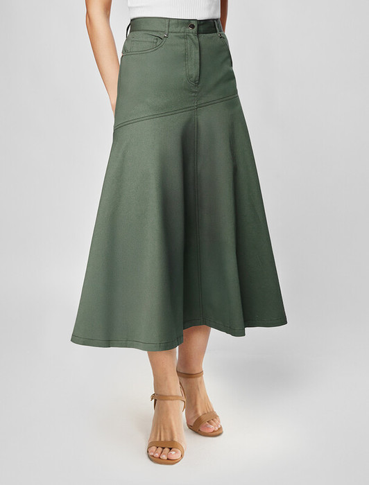 Совместные покупки Уфа Женская одежда Юбки — 09.04 Vilatte Юбка-годе из хлопка D26.198 темно-оливковый
