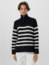 09.04 Vilatte Удлиненный джемпер крупной вязки с узорными линиями и молнией D39