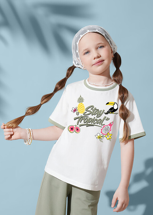 Мягкая футболка из натурального 100 % хлопка приятна к телу и обеспечивает комфорт в течение дня. Стильные контрастные обтачки по горловине и рукаву добавляют изюминку, а яркий принт на переде делает модель выразительной.