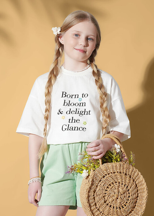 Футболка оверсайз из 100 % хлопка дарит комфорт и свободу движений.На переде-стильный принт, дополненный пришивным декором в виде цветов.Нежная деталь придаёт модели романтичный акцент,делая её отличным выбором для повседневного гардероба юной модницы.