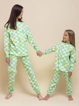 Новогодняя хлопковая пижама из джемпера и брюк. Горловина , манжеты по низу рукава и брюк из эластичного полотна. Лонгслив свободного кроя со спущенным плечом и милым принтом. Брюки среднего объема, эластичный пояс обеспечит комфорт и идеальную посадку.
