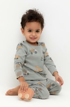 Комплект хлопковой пижамы из джемпера и брюк. Джемпер свободного кроя дополнен эластичной горловиной и манжетами. Брюки среднего объема, эластичный пояс обеспечит комфорт и идеальную посадку. По низу брюк эластичные манжеты.
