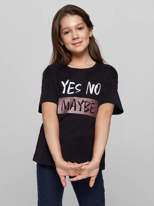 Черная футболка прямого силуэта DD 1248 из мягкого хлопка сочетает в себе минимализм и оригинальные тенденции уличной моды. Футболка создана специально для того, чтобы даже самой активной девочке было удобно и комфортно. FAMILY LOOK: одежда в стиле family look не просто создает единый образ для мамы и дочки. Стиль family look демонстрирует единение, целостность и сплоченность семьи, в которой царят любовь и гармония. · прямой силуэт· круглый вырез горловины· спущенная линия плеча· короткий рукав· рисунок «Maybe»· мягкий 100% хлопок· устойчивый цвет и сохранение формы при соблюдении рекомендаций по уходу· прекрасный вариант на каждый день· создайте family look с женкой футболкой LD 1242.