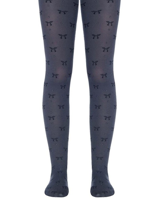 Плотные эластичные меланжевые фантазийные колготки 50 DEN из нитей микрофибры и LYCRA. Рисунок "бантики" выполнен из черной полиамидной нити, рисунок "точки" выполнен из люрексовой нити, комфортный плоский шов, уплотненный мысок.