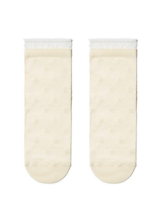 Тонкие носочки TIP-TOP из вискозы понравятся маленькой моднице благодаря стильному дизайну: глянцевым рисункам и декоративной прозрачной сетке по краю резинки.