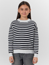 Вязаный джемпер для девочки из мягкой полушерстяной пряжи. Высокий воротник с отворотом хорошо защищает от холода. Длинные рукава с манжетами. Внизу эластичный пояс. Изделие сохраняет форму и стойкий цвет после многочисленных стирок.