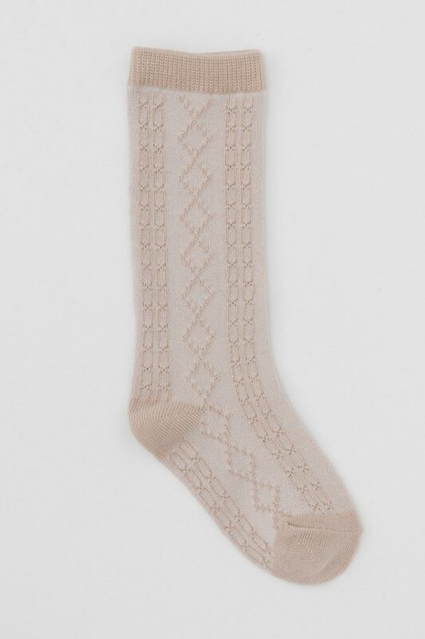 Гольфы для девочки, связаны ажурным геометрическим узором.