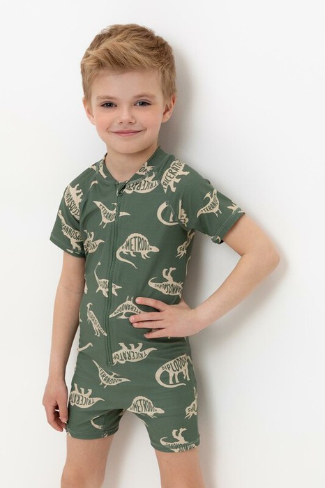 Купальник для мальчика. Застегивается спереди на замок. На замке предусмотрена защита для подбородка. На груди и спинке принт. Оригинальный принт выполнен из стойких гипоаллергенных красителей.