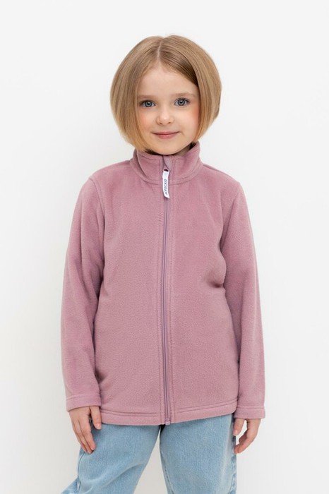 Флисовая куртка для девочки. У изделия высокий воротник, предусмотрена защита шеи и подбородка, по бокам карманы. Куртка сохраняет цвет и форму после многократных стирок.