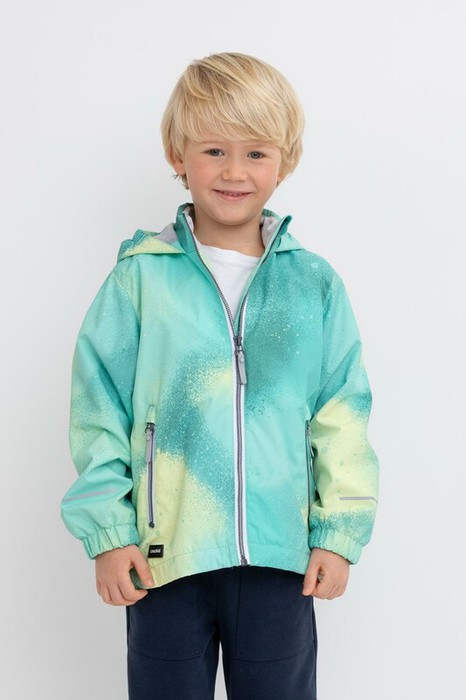 Ветровка для мальчика из мембранной ткани с дополнительной тефлоновой обработкой.  Верхняя мембранная ткань 1000/1000 с тефлоновым покрытием отталкивает воду и грязь и обладает «дышащими» свойствами. Подкладка выполнена из 100% полиэстера. У изделия предусмотрена защита подбородка. Несъемный капюшон регулируется с помощью эластичного шнура со стопперами. Низ рукавов имеет эластичную резинку для лучшего прилегания. Во всех изделиях верхнего ассортимента для безопасности ребенка предусмотрены светоотражающие элементы