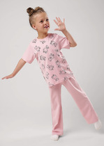 Трикотажная пижама из натурального хлопка. Джемпер с длинными втачными рукавами и брюки с эластичной резинкой в поясе. Мягкие манжеты на рукавах и по низу брюк. Оригинальная набивка выполнена из стойких текстильных гипоаллергенных красителей. Изделие сохраняет цвет и форму после многократных стирок. Все трикотажные полотна производятся в соответсвии с нормами швейцарского сертификата ЭкоТекс.