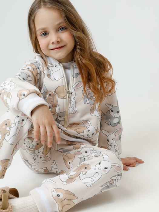 Мягкий бомбер на молнии для девочки. Изготовлен из высококачественного футера с начёсом. Воротник, манжеты и пояс выполнены вязаные. Оригинальный рисунок выполнен из стойких текстильных красителей. Бомбер сохраняет форму и стойкий цвет после многочисленных стирок. Все трикотажные полотна производятся в соответствии с нормами швейцарского сертификата ЭкоТекс.