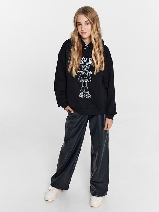 Брюки для девочек свободного силуэта. Средняя посадка, пояс отрезной с эластичной тесьмой Rv50 внутри. Спереди карманы с отрезным бочкок.. Без застежки. Низ обработан швом в подгибку.