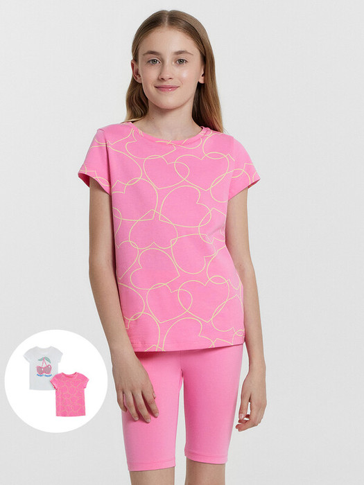 Футболка полуприлегающего силуэта. Перед и спинка цельнокроенные. Рукав втачной, короткий. Горловина круглой формы, обтачка из основного полотна. Шов притачивания обтачки закрыт бейкой из основного полотна. Низ изделия и рукваов обработан на 2-х игольной плоскошовной машине швом в подгибку.