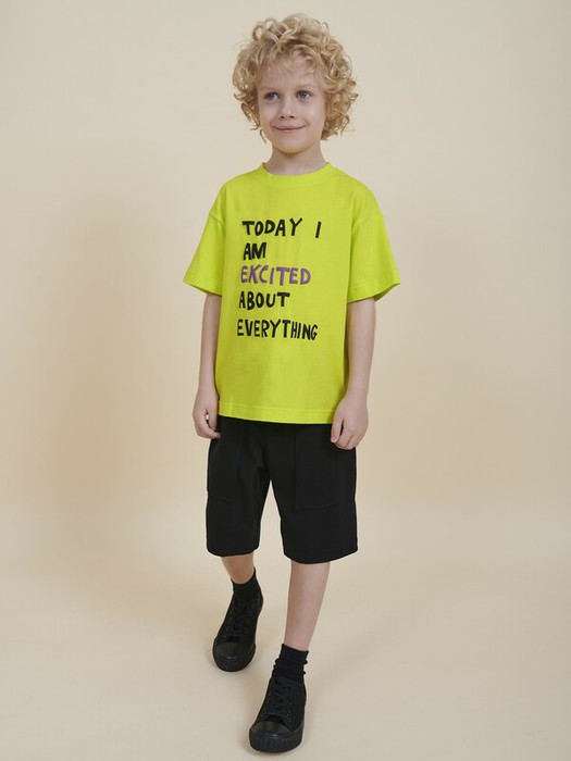 Модель представлена в двух ярких расцветках на выбор. Это черная футболка для мальчика и желтая. Красивый вариант на любой выход. По переду изделия надпись "Today I am excited about everything" – перевод "Сегодня меня волнует всё". Объемный принт с контрастной надписью. Прикольная футболка с принтом привлекает стильным дизайном. Размерная линейка: 1 (86); 2 (92); 3 (98); 4 (104); 5 (110); 6 (116); 7 (122); 8 (128); 9 (134); 10 (140); 11 (146).
