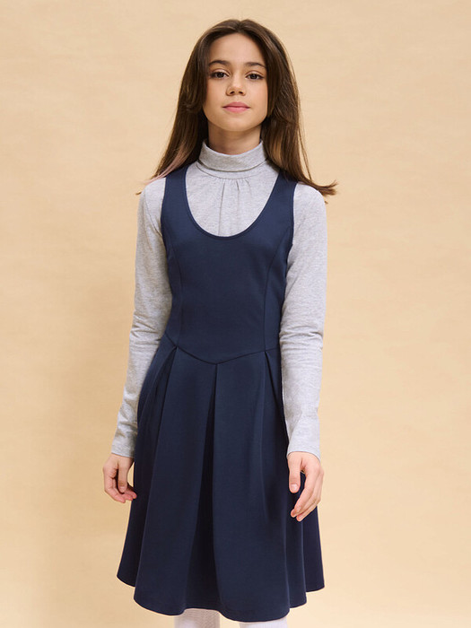 Школьный сарафан для маленьких принцесс. Изделие с округлым вырезом без застежки легко надевать и снимать, что так ценят самостоятельные леди. Завязка на бант из репсовой ленты сзади позволяет регулировать ширину и выбирать, что надеть под платье плотную водолазку или легкую блузу для торжественных случаев. Универсальные цвета не требуют частой стирки, а трикотаж на основе вискозы, обеспечит долгую практичную носку и простоту ухода.