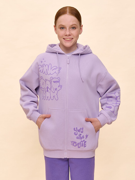 Трикотажная куртка из смесового футерованного полотна с начесом. Свободного силуэта, с мягким, очень спущенным плечом и застежкой "на молнию". По низу изделия и низу рукава манжета из рибаны. На переде накладные карманы. Капюшон с регулировкой шнуром