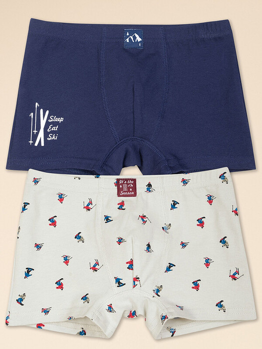 Трусы боксеры для мальчика из мягкого хлопка в наборе из 2 штук представлены в практичном синем и сером цвете.
